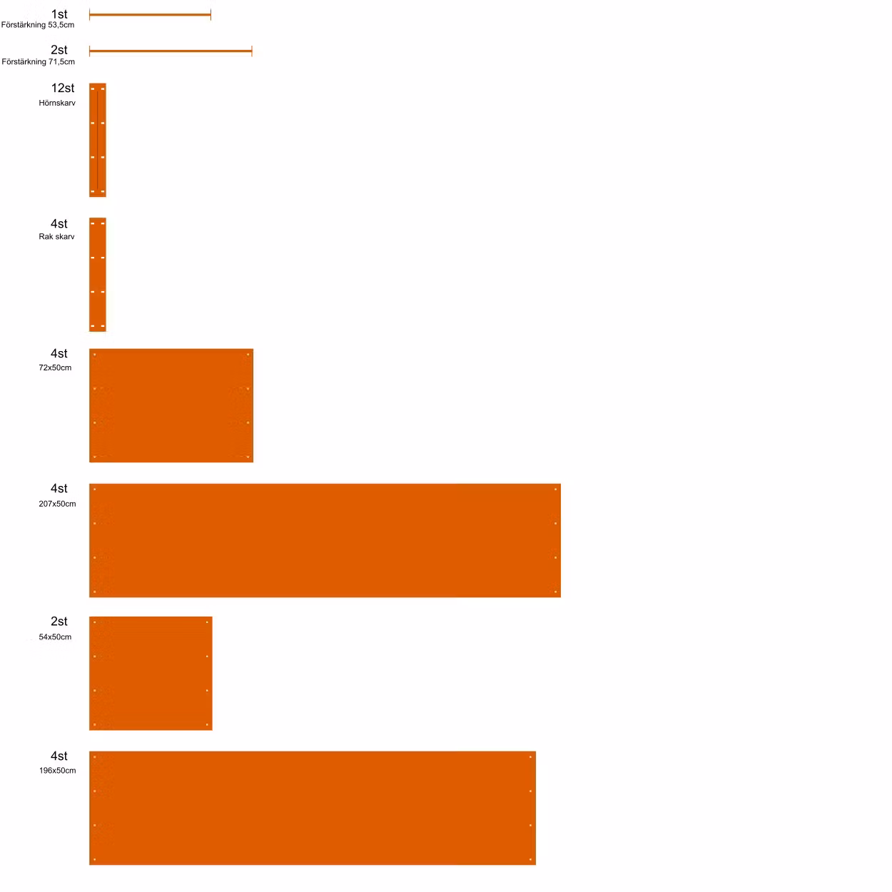 3st förstärknings-stag för montering tvärs över långsidornas mittskarv.