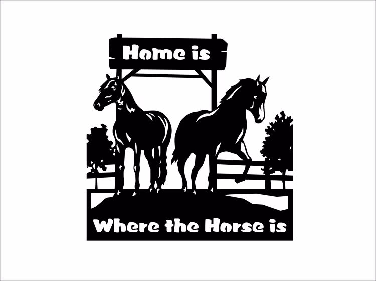 Väggdekoration med hästar och texten "Home is where the Horse is".